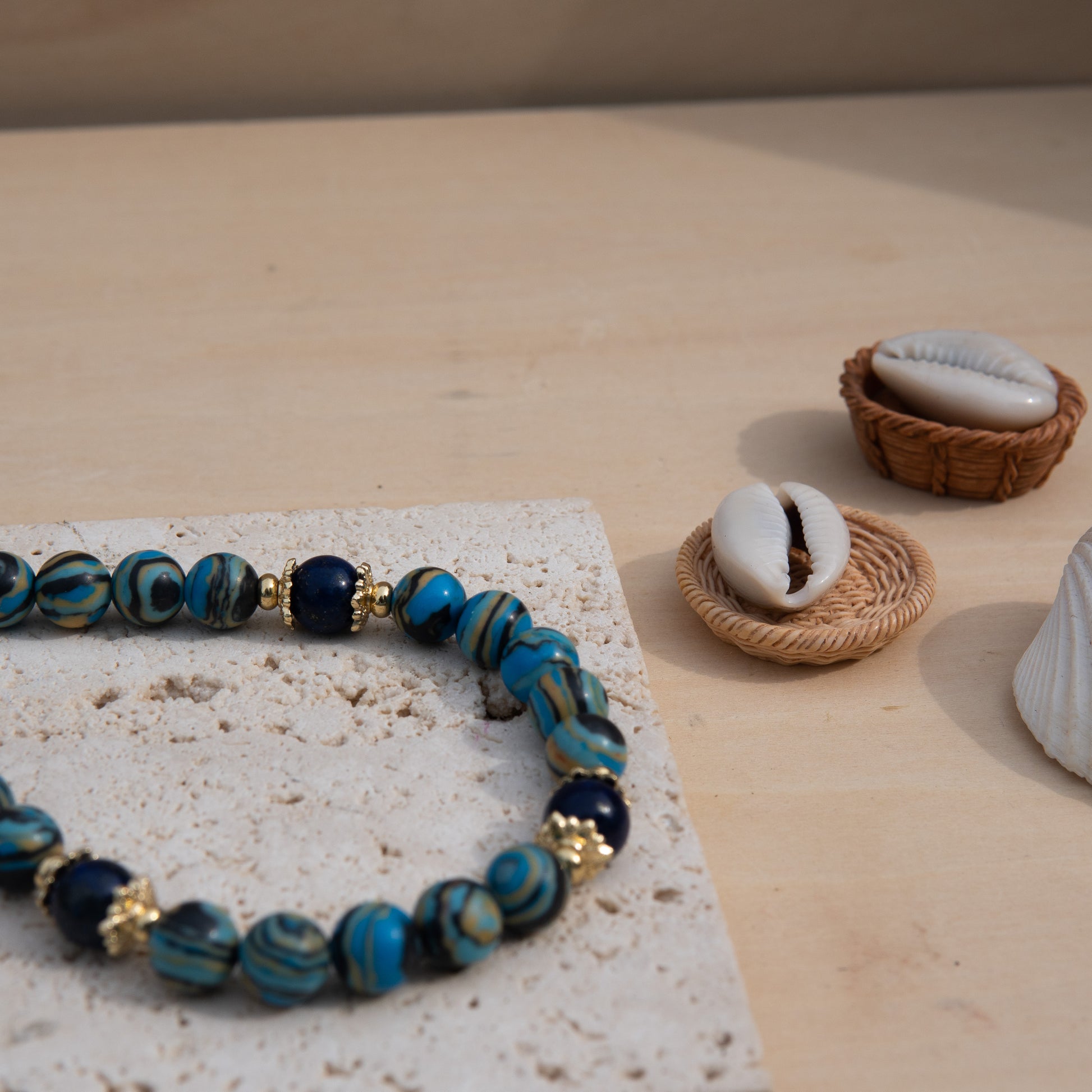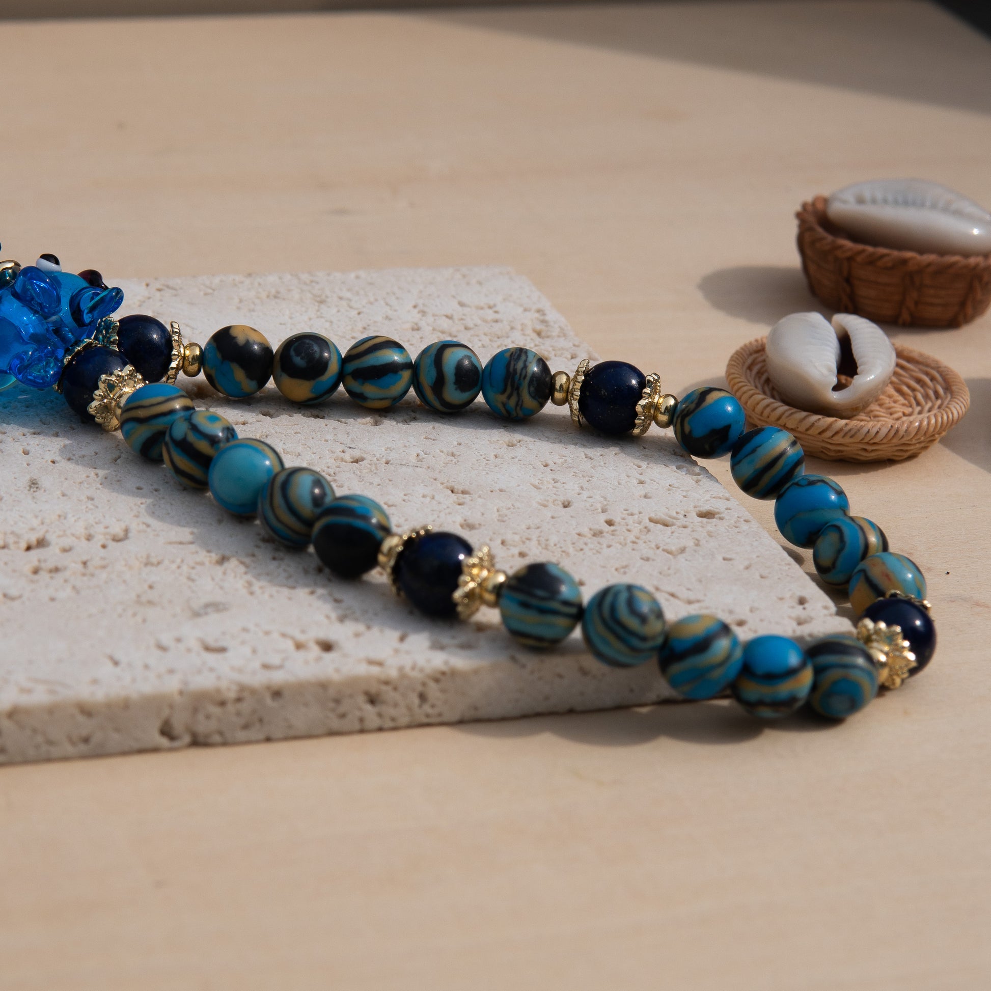 - Material: Synthetic Malachite, Natural Lapis Lazuli, 18K Gold-Plated 304 Stainless Steel, 14K Gold-Plated Brass, Cubic Zirconia