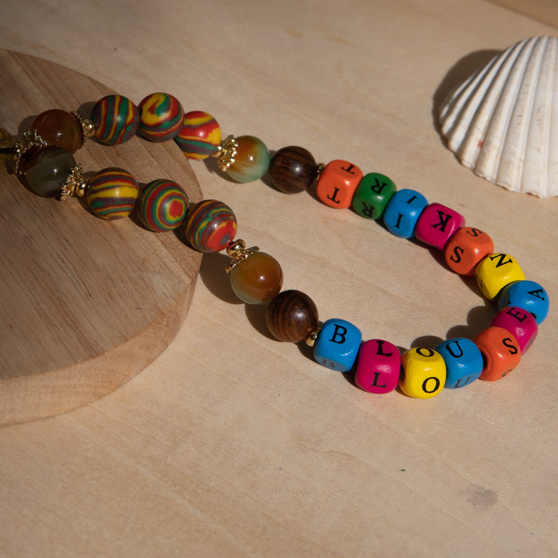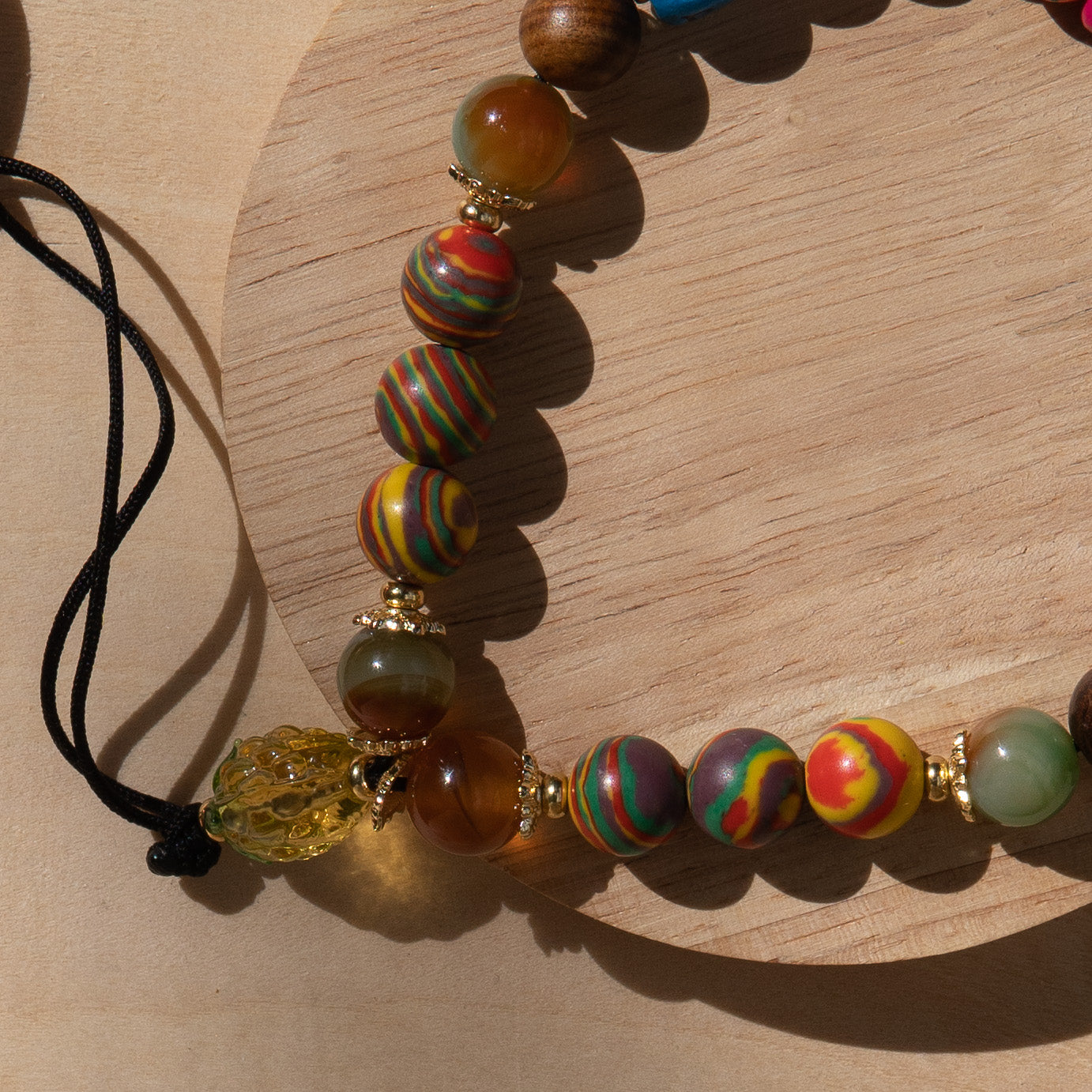- Material: Natural Peacock Agate, Synthetic Malachite, Wood, 18K Gold-Plated 304 Stainless Steel